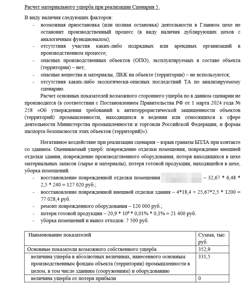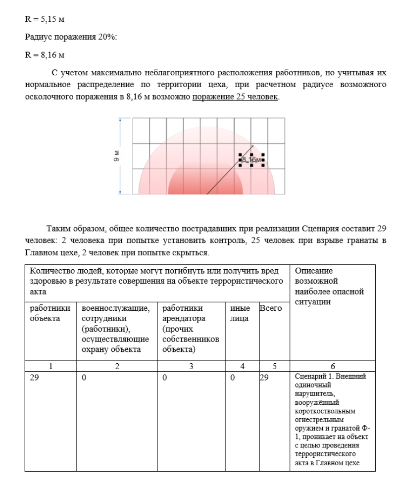 Расчетно-пояснительная записка, в которой выявлены наиболее вероятные модели нарушителей и выполнены расчеты экономических и людских потерь для различных вероятных случаев ТА (террористического акта).