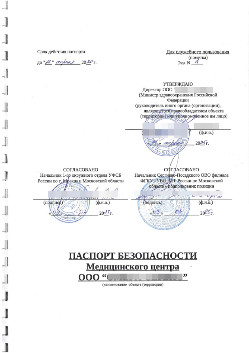 Разработали полный пакет внутренних документов по антитеррористической защищенности: приказы о назначении ответственных, инструкции для персонала, журналы, планы мероприятий и тренировок, порядок взаимодействия с силовыми ведомствами.