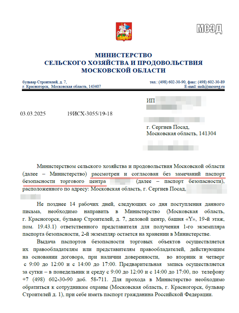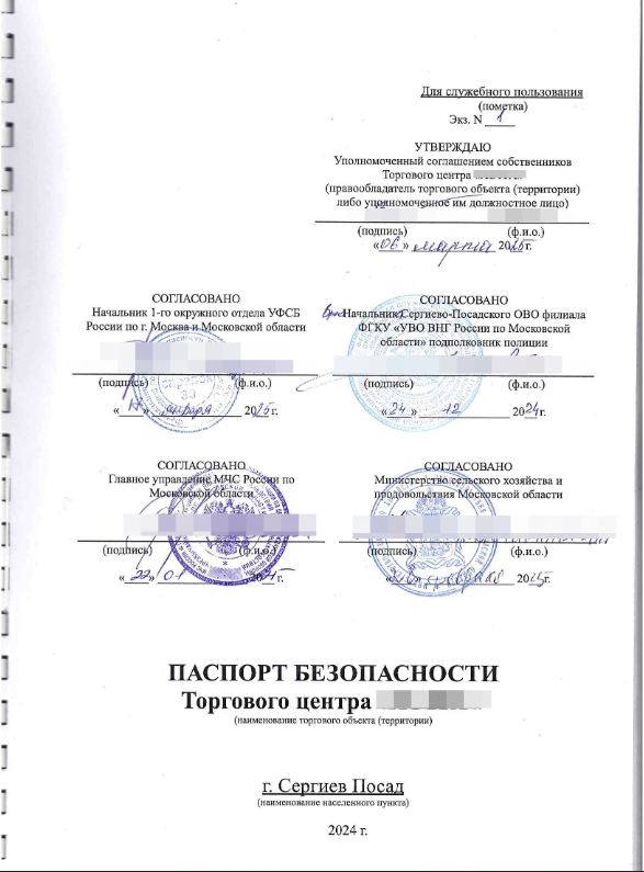 Разработка и согласование паспорта безопасности в соответствии с Постановлением Правительства Российской Федерации от 19.10.2017 № 1273 "Об утверждении требований к антитеррористической защищенности торговых объектов (территорий) и формы паспорта безопасности торгового объекта (территории)"