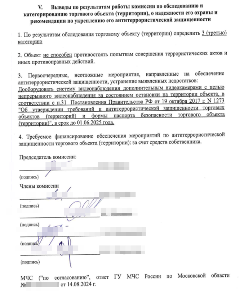 Определили меры по инженерно-технической, физической защите и пожарной безопасности торгового объекта (территории).