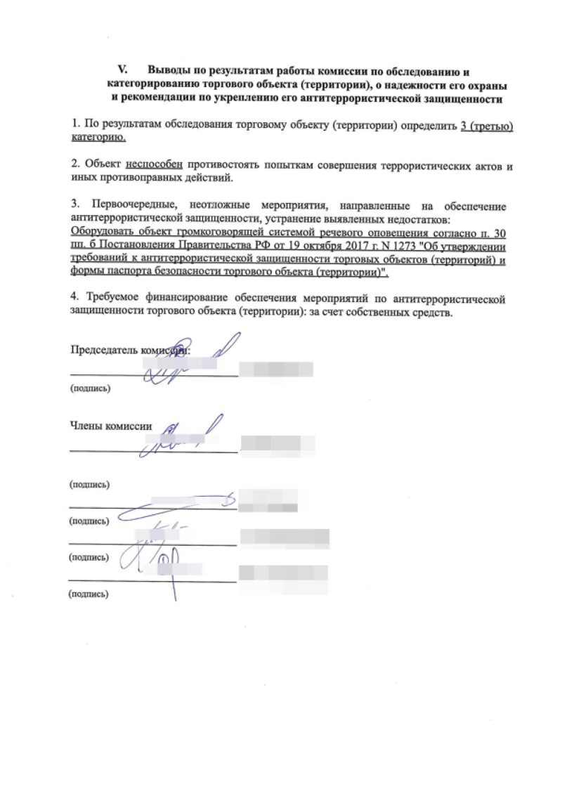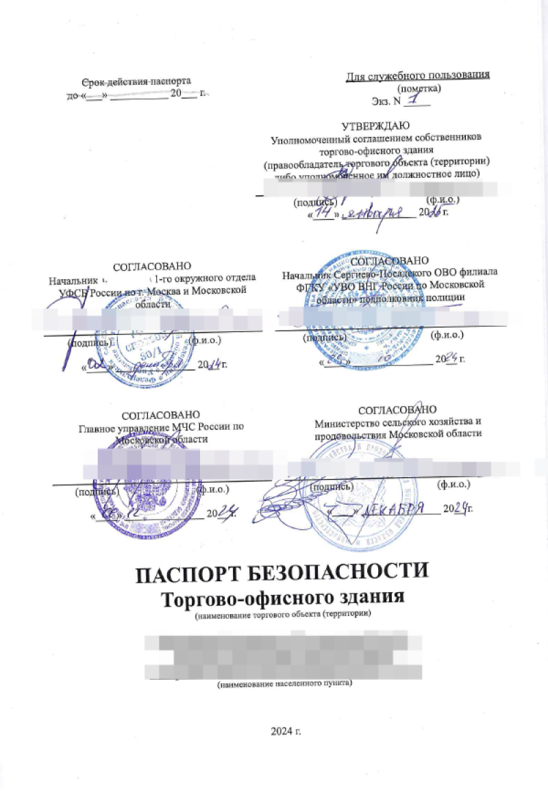 Разработка и согласование паспорта безопасности в соответствии с Постановлением Правительства Российской Федерации от 19.10.2017 № 1273 "Об утверждении требований к антитеррористической защищенности торговых объектов (территорий) и формы паспорта безопасности торгового объекта (территории)"