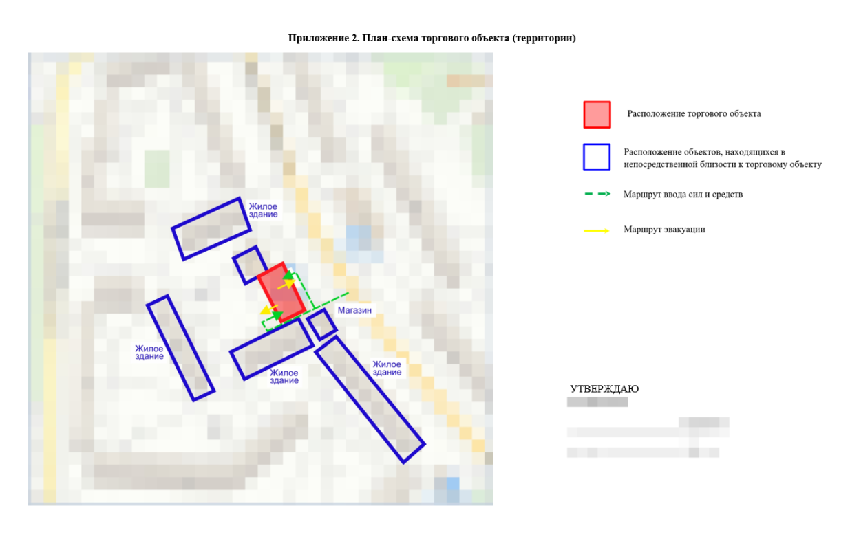 Подготовка и актуализация графической части. На объекте отсутствовали актуальные схемы, необходимые для паспорта безопасности. Мы разработали полный комплект графических материалов: план-схему территории с привязкой к местности, ближайшими строениями, подъездными путями и улицами; схемы с указанием инженерно-технических средств защиты; схемы коммуникаций (водоснабжения, электроснабжения, теплоснабжения).