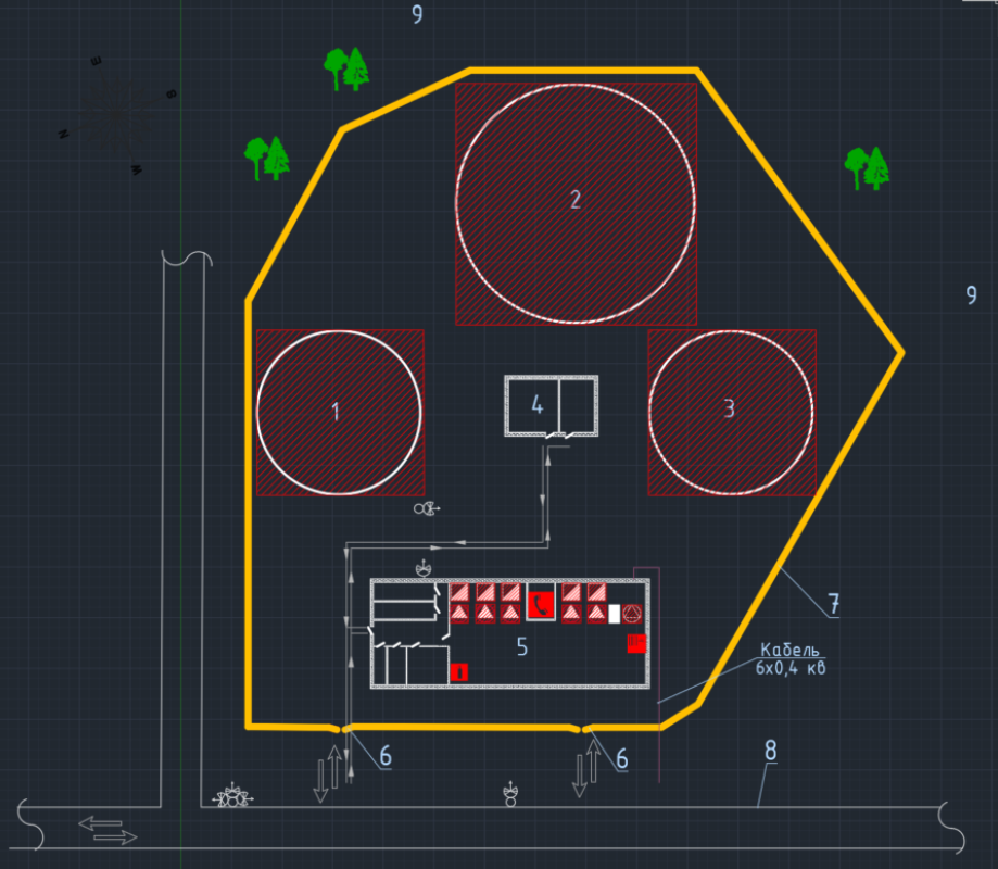 Ситуационный план объекта часто требуется еще на этапе категорирования. Планы рисуем в Autocad в формате dwg, формат А3 или А4 (в зависимости от схем коммуникаций на объекте, были случае, когда форма печатных карт был А1).