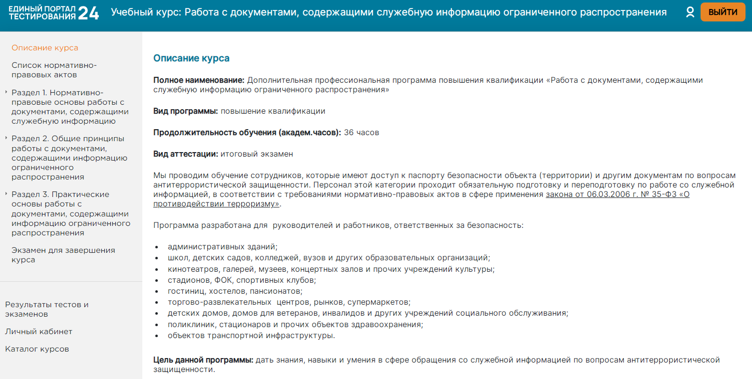 Цель обучения: повысить профессиональные компетенции лиц, имеющих право доступа к служебной информации ограниченного распространения, содержащейся в паспорте безопасности объекта (территории) и иных документах объекта (территории) с грифом «Для служебного пользования» (ДСП), в том числе о принимаемых мерах по его антитеррористической защищенности (АТЗ).