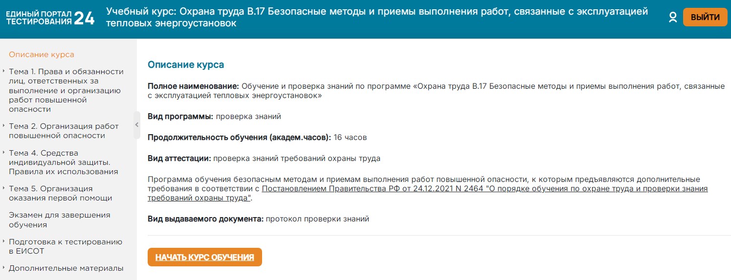 Обучение по программе «Охрана труда В. Безопасные методы и приемы выполнения работ, связанные с эксплуатацией тепловых энергоустановок (ОТ.В.17)»