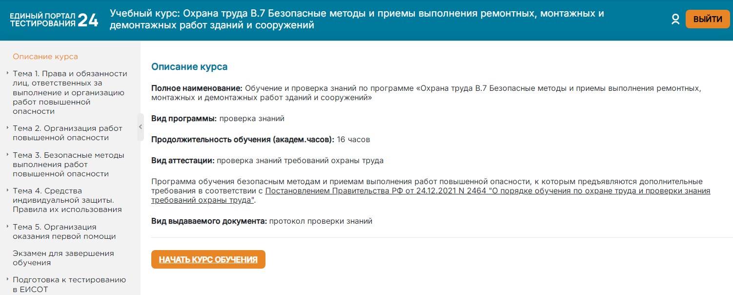Обучение по программе «Охрана труда В. Безопасные методы и приемы выполнения ремонтных, монтажных и демонтажных работ зданий и сооружений (ОТ.В.7)»